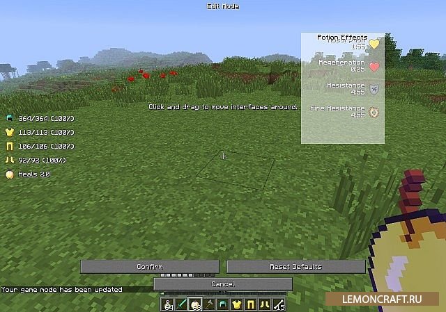 Мод на интерфейс для PvP боев Better PvP предназначен для изменения интерфейса игры для ориентации ее на проведение PvP боев. После установки мода на экран монитора будет выводится информация о здоровье, уроне и какие эффекты в данный момент действуют. Если нажать кнопку F вы сможете быстро восстановить свое здоровье.
